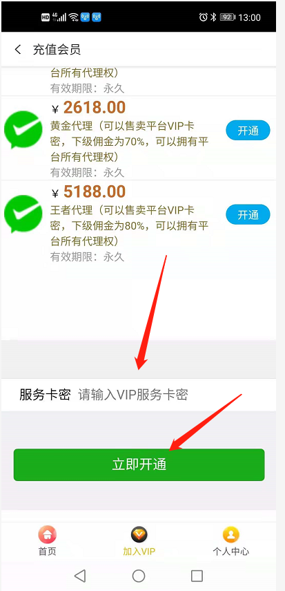 2、点击加入VIP按钮,复制粘贴卡密,点击立即开通即可使用。